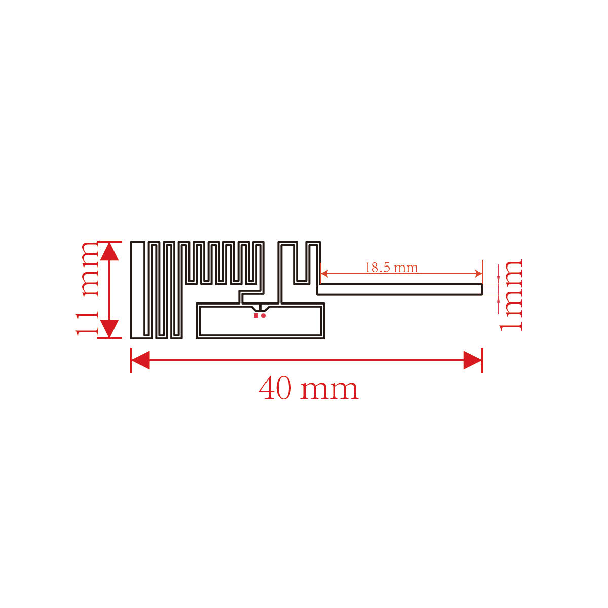 | 天线尺寸(长×宽) | 40×11毫米 |